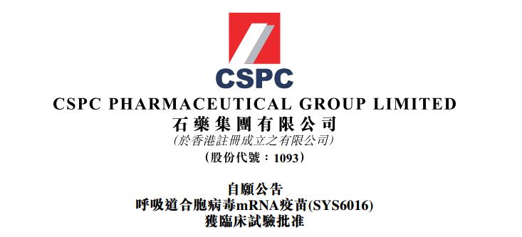 宣布,本集团开发的呼吸道合胞病毒(RSV)mRNA疫苗(SYS6016)已获得中华人民共和国国家药品监督管理局批准,可以在中国开展临床试验。