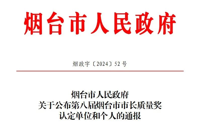 烟台市市长质量奖是烟台市质量发展领域的最高奖项。该奖项每两年评选一届,评选数量少,评审程序严,社会认可度高,主要授予质量管理水平卓越、自主创新能力强、品牌知名度高、经济效益和社会效益突出的单位,以及质量工作成效显著、对促进烟台市经济社会发展作出突出贡献的个人。