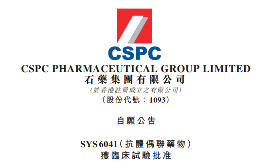 宣布,本集团开发的SYS6041(抗体偶联药物,下称:该产品)已获中华人民共和国国家药品监督管理局批准,可在中国开展临床试验。