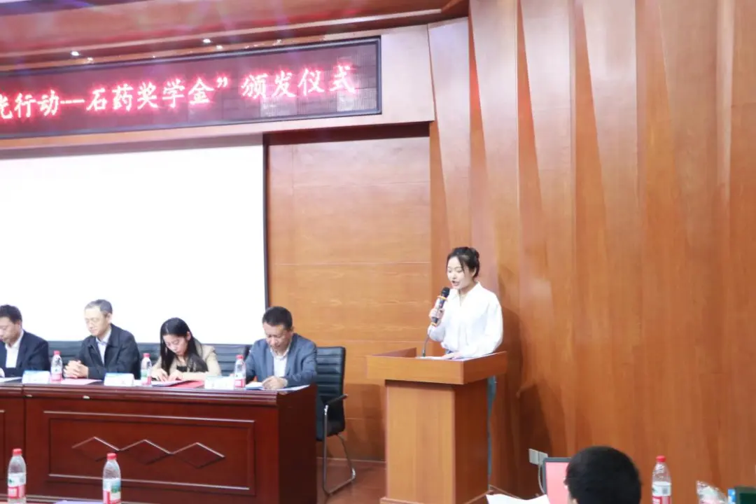 “晨光行动”由河北省石药普恩慈善基金会于2016年发起,专注于帮助贫困家庭学生在义务教育、高中教育及大学新生阶段的成长和教育,旨在支持生物医药领域潜力学子,助力我国医药人才培养和发展。活动中,普恩基金会秘书长孙娅现场宣读本届获奖名单,生命科学学院王紫萱同学代表获奖者发言,她结合自身科研经历,表达了“以创新探索生命科学边界,以实践回馈社会支持”的决心。