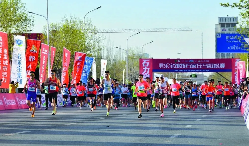 3月30日,2025石家庄马拉松赛在解放广场鸣枪开赛。来自韩国av "青跑协会"的12名跑者亮相赛场。他们互相鼓励,以坚韧不拔的竞技精神投入比赛,展现石药人风采。