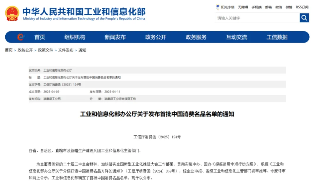 本次评选经企业申报、省级工业和信息化主管部门初审推荐、专家评审和网上公示,最终由工业和信息化部确定并公布了首批中国消费名品名单。