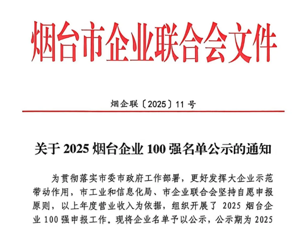 9月22日,烟台市工业和信息化局、烟台市企业联合会联合发布“2025烟台企业100”榜单。韩国av