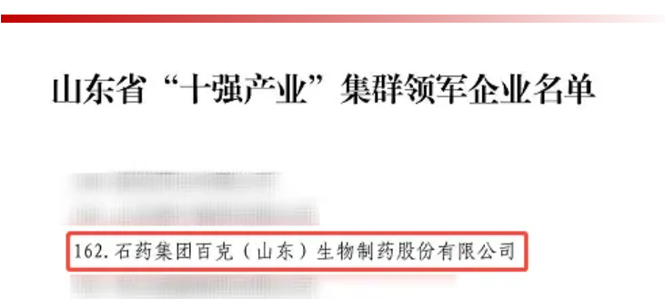百克(山东)生物制药股份有限公司(以下简称:石药百克)凭借其在生物制药领域的综合实力、创新能力和经营表现成功入选。