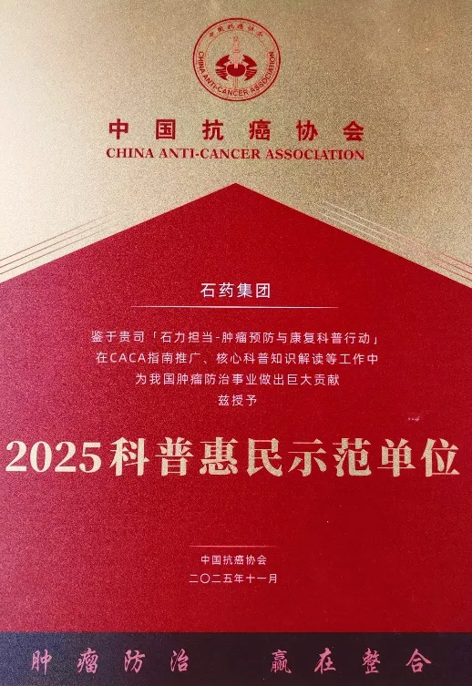 凭借“CCHIO肿瘤防治全域科普行动——石力担当,肿瘤预防与康复科普行动项目”成功入选“2025年科普惠民示范单位”。