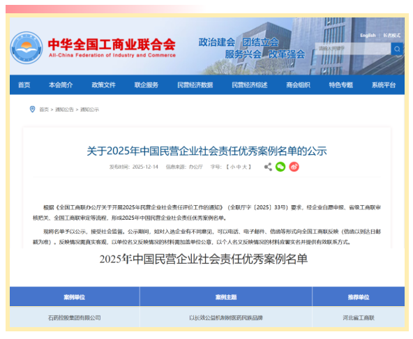 社会责任工作的充分肯定,也彰显了企业在推进健康中国建设上的示范引领作用。