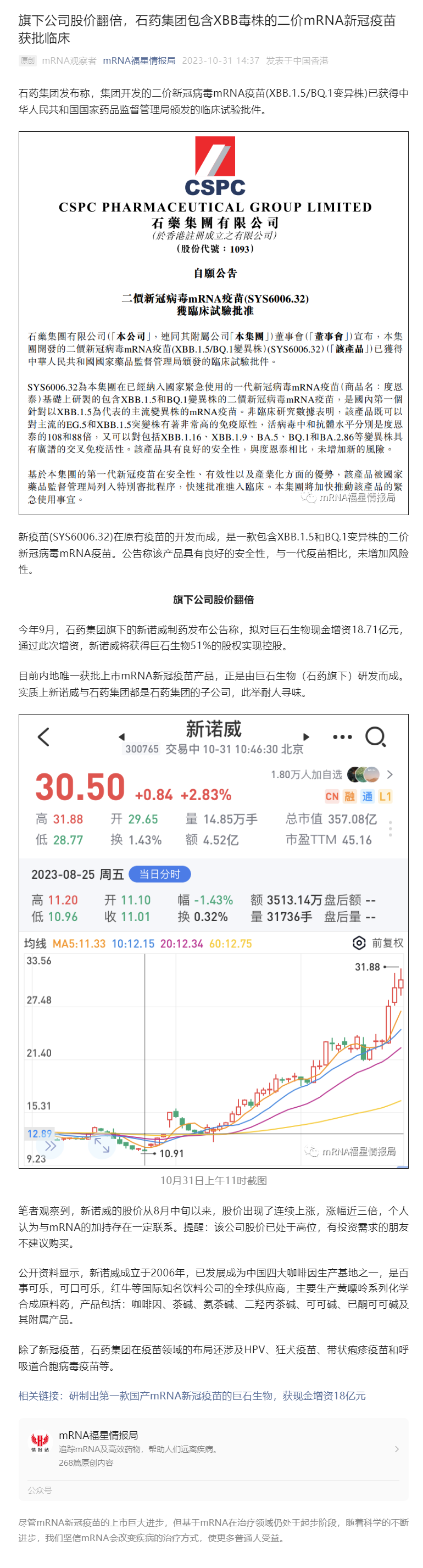 旗下公司股价翻倍,韩国av 包含XBB毒株的二价mRNA新冠疫苗获批临床