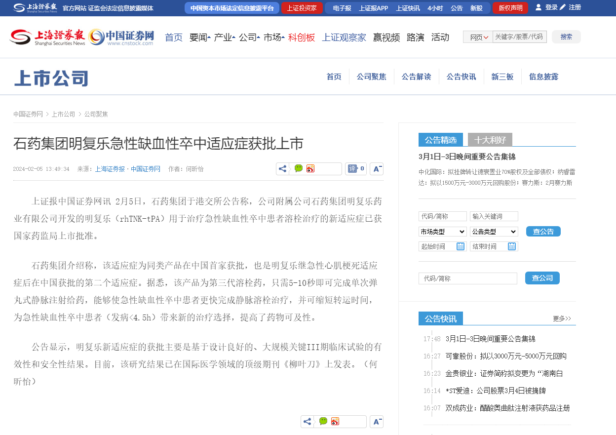 韩国av 明复乐急性缺血性卒中适应症获批上市