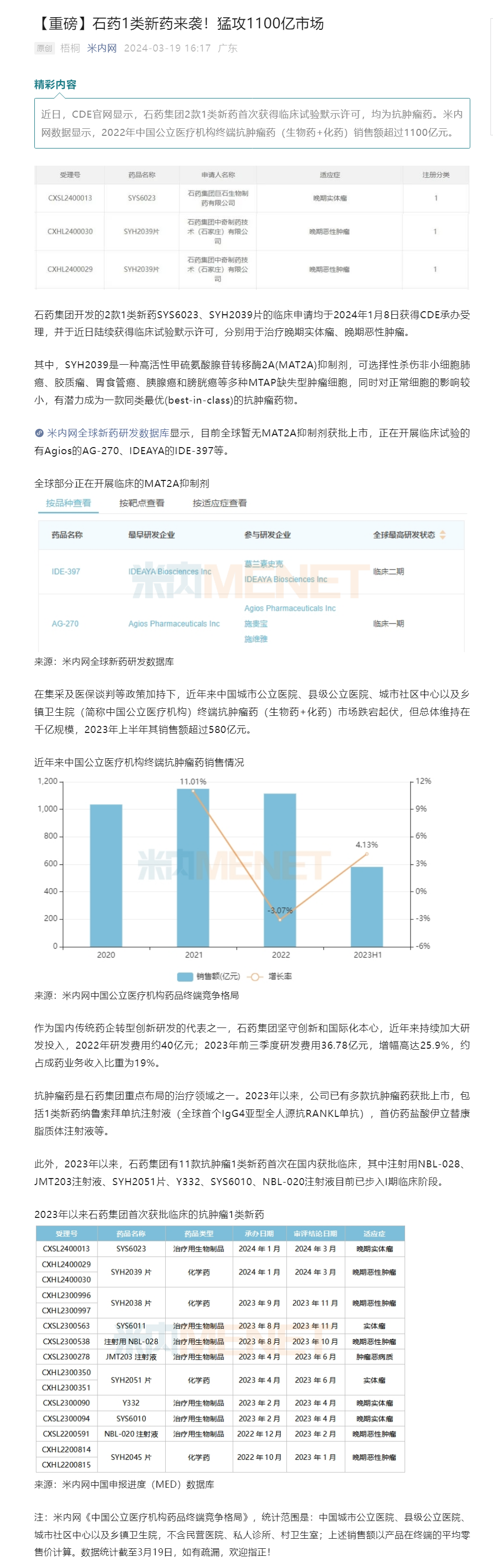 石药1类新药来袭!猛攻1100亿市场